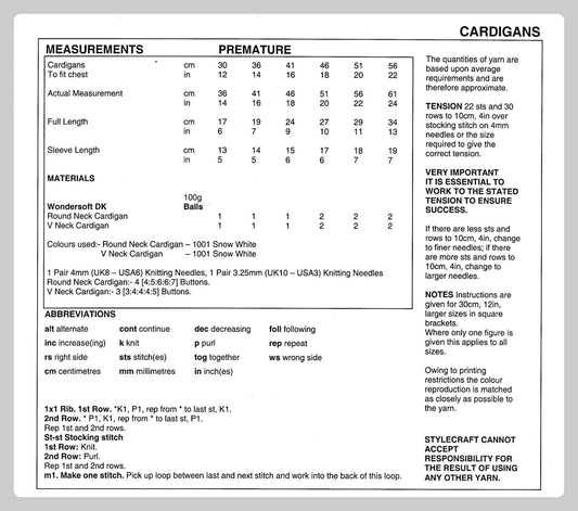 Vintage Knitting Pattern Classic Baby Plain Simple Easy Knit Cardigan Sweaters V and Round Neck PDF Instant Digital Download Preemie - 2 yrs