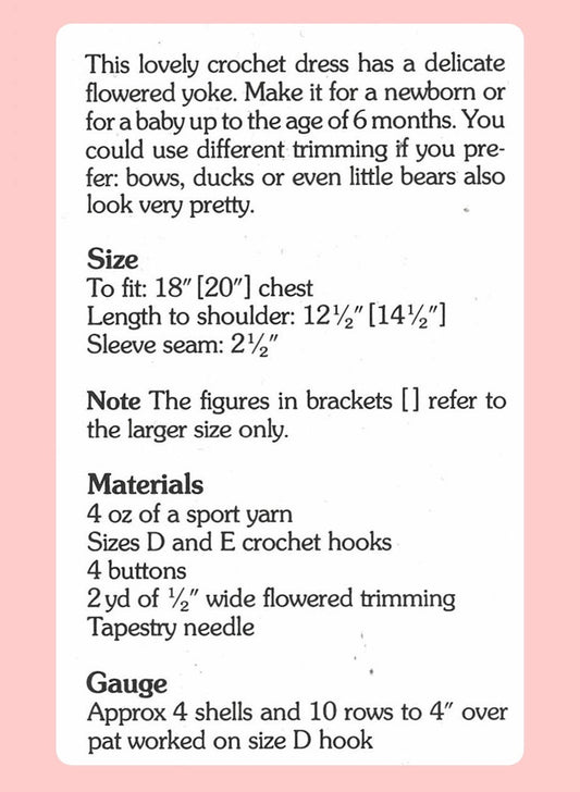 Vintage Crochet Pattern Baby Girl Flower Yoke Shell Stitch Dress PDF Instant Digital Download 0-12 months 5 Ply