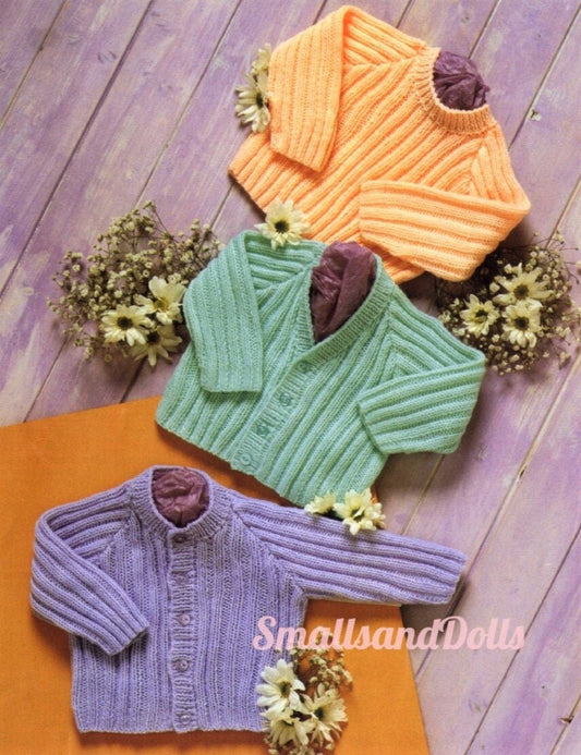 Vintage Knitting Pattern Classic Ribbed Baby Cardigan and Pullover Sweaters Jumper PDF Instant Digital Download Preemie - 2 yrs DK 8 Ply