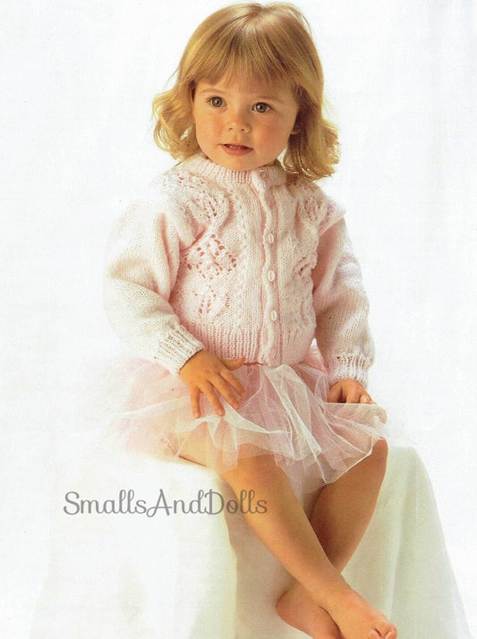 Vintage Knitting Pattern Baby Toddler Flower Diamond Panel Cardigan Sweater PDF Instant Digital Download 6m -4 yrs DK 8 Ply