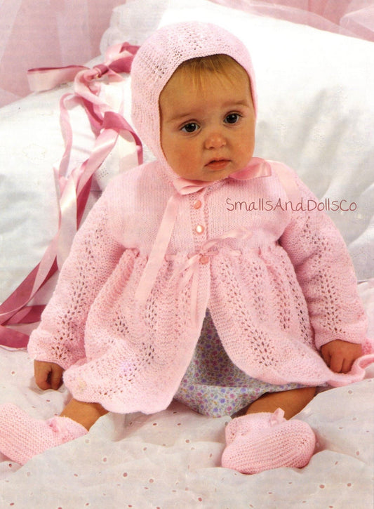 Vintage Knitting Pattern Cute Baby Girl Jacket Bonnet and Booties Set PDF Instant Digital Download 0-6m 3 Ply