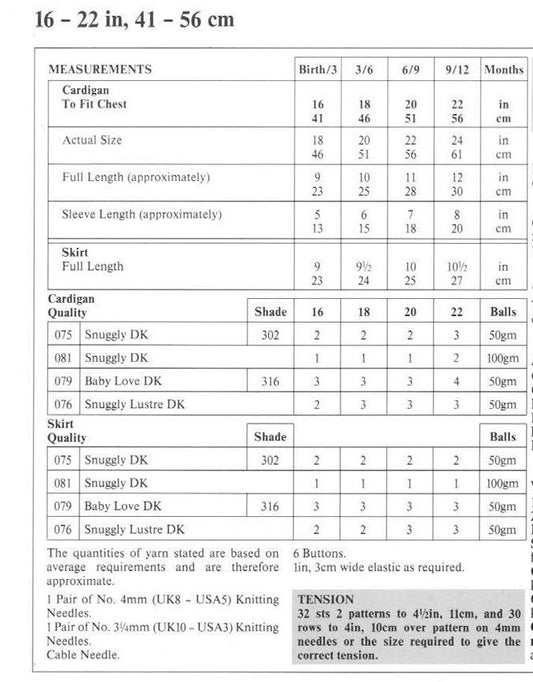 Vintage Knitting Pattern Baby Girls Cute Cardigan Sweater and Skirt Set PDF Instant Digital Download 0-12 m DK