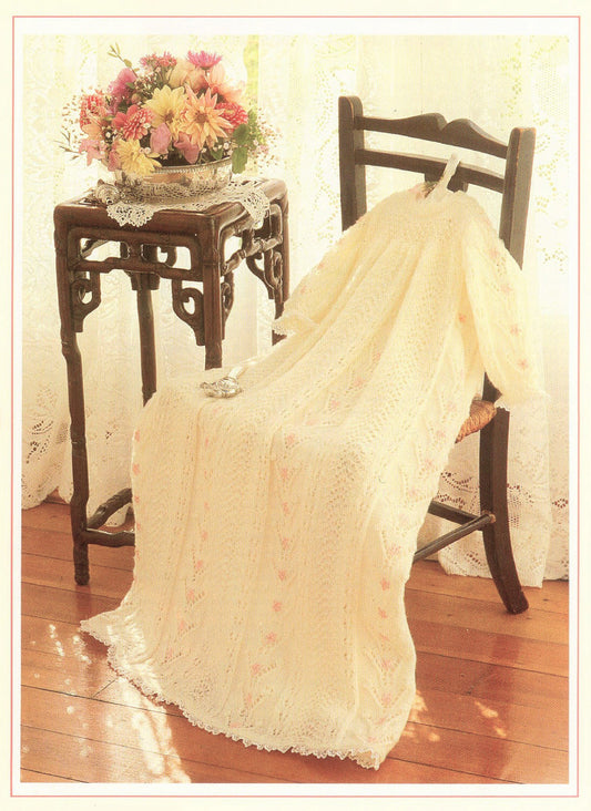 Vintage Knitting Pattern Baby Long Heirloom Christening Gown Dress Embroidered Flowers PDF Instant Digital Download Baptism 0-12m 3 Ply