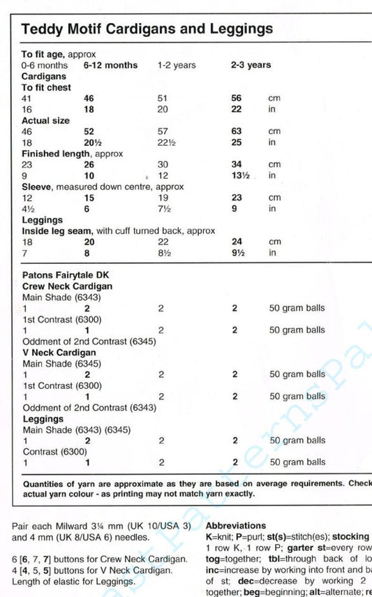 Vintage Knitting Pattern Baby Teddy Bear Face Motif Cardigan Sweater & Striped Leggings Set PDF Instant Digital Download 0-3 yrs DK