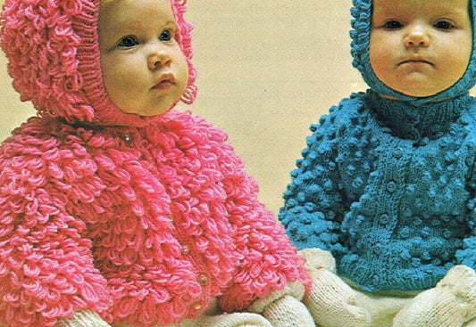 Vintage Knitting Pattern Baby Loop & Bobble Stitch Cardigan Jackets Hats Legging Mitts Sets PDF Instant Digital Download 0-12m