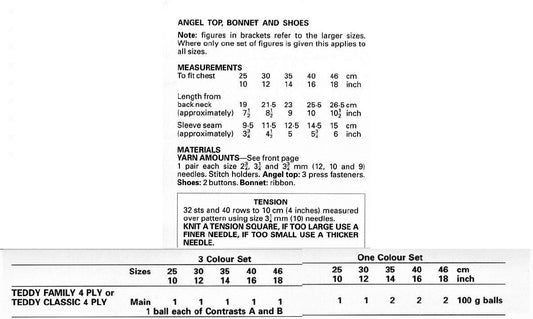 Vintage Knitting Pattern Baby Girls Angel Top Bonnet Bootees Set PDF Instant Digital Download Solid or Tri Color Preemie to 6m 4-Ply