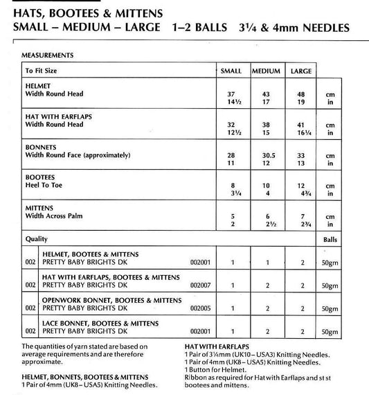 Vintage Knitting Pattern Baby Hats Helmets Bonnets Booties Mittens Sets PDF Instant Digital Download 3 Sizes S M L DK