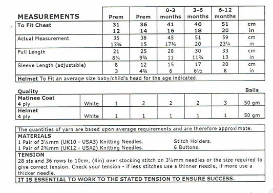 Vintage Knitting Pattern Baby Girl Boy Dressy Coat Helmet Hat Set Easy Knit PDF Instant Digital Download Preemie - 12 months 4 Ply