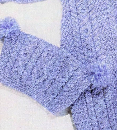 Vintage Knitting Pattern Baby Cable Knit All In One Aran Romper Pom Pom Hat Set Instant PDF Digital Download Cabled XOXO Hearts 6m - 2 yrs
