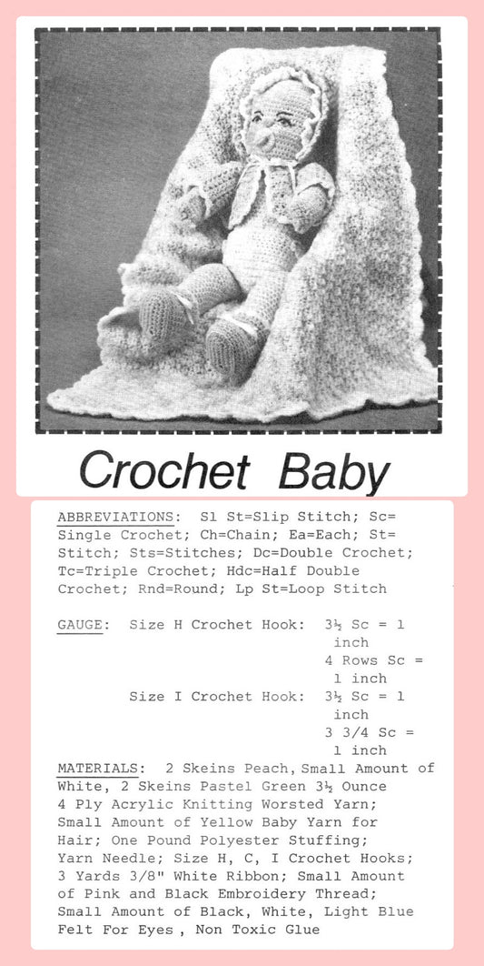 Vintage Crochet Pattern Complete Baby Doll Pacifier Bonnet Clothing and Blanket Set PDF Instant Digital Download Soft Stuffed Toy Dolly