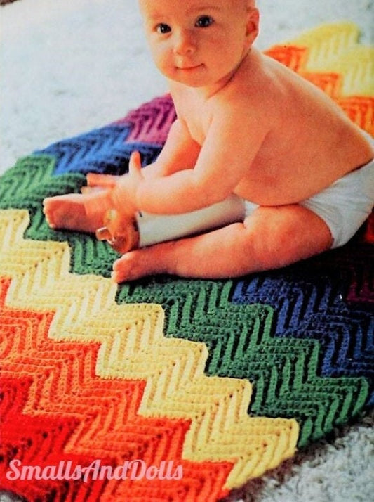 Vintage Crochet Pattern Classic Rainbow Ripple Baby Afghan Blanket PDF Instant Digital Download Quick Easy ZigZag Lapghan 22x33 4 Ply