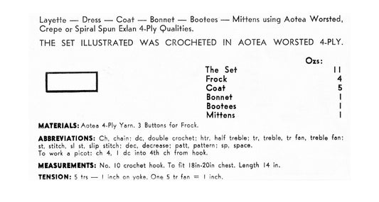 Vintage Crochet Pattern Pretty Baby Girl Treble Stitch Layette Set PDF Instant Digital Download Coat Dress Bonnet Mitts Booties 6-12m 4 Ply