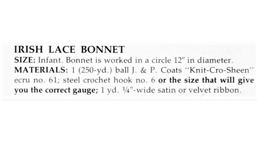 Vintage Crochet Pattern Pretty Baby Irish Lace Bonnet Rose PDF Instant Digital Download Lacy Circular Hat Cotton Thread