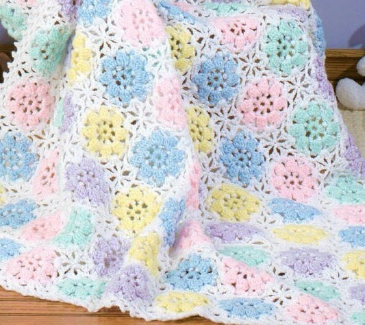 Vintage Crochet Pattern Lace Pastel Flower Wheels Motif Baby Afghan Blanket PDF Instant Digital Download Floral Square Crib Cover 5 Ply