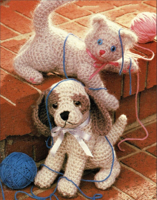 Vintage Crochet Pattern Sweet Kitten and Puppy Retro Amigurumi PDF Instant Digital Download Crocheted Realistic Baby Pet Animals 10 Ply 8"