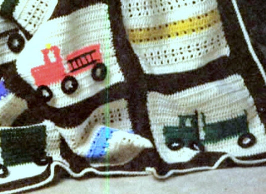 Vintage Crochet Pattern Trucks Vehicles Blocks Baby Afghan Design PDF Instant Digital Download Toddler Bed Crib Blanket 40x54 4 Ply