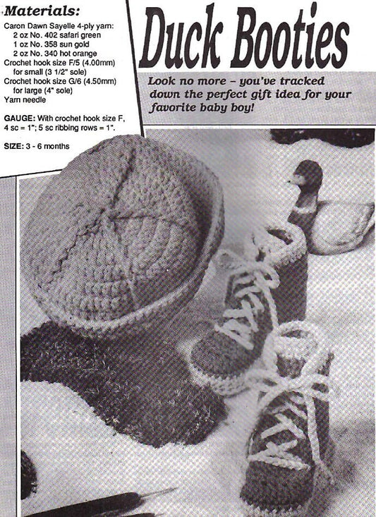 Vintage Crochet Pattern Little Hunter Set Baby Hunting Cap Hat & Boots Booties PDF Instant Digital Download Duck Deer Stalker 3-6m 4 Ply