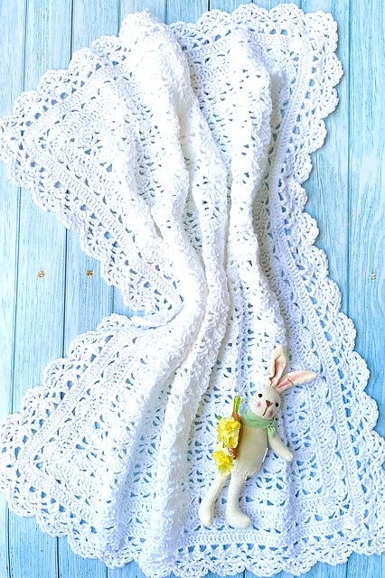 Vintage Crochet Pattern Victorian Heirloom Lace Baby Afghan Blanket PDF Instant Digital Download Pretty Shells Christening Lapghan 5 Ply