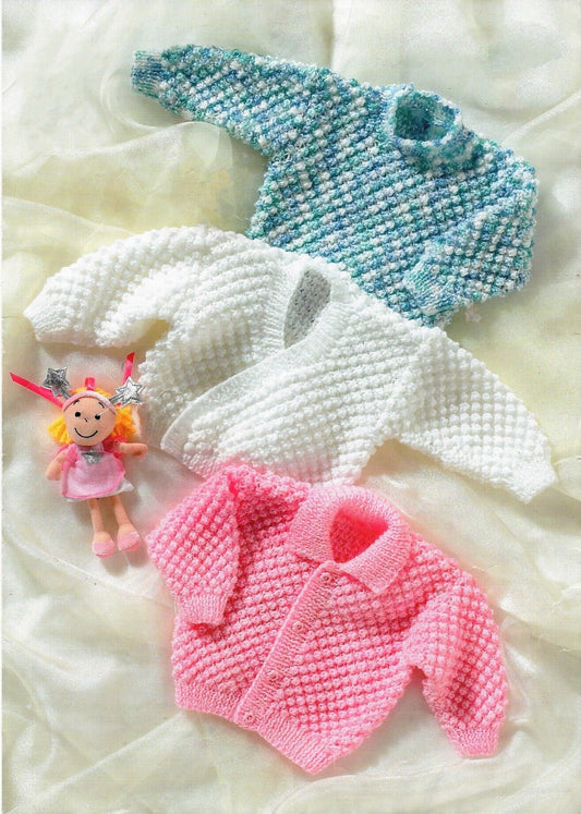 Vintage Knitting Pattern Baby Bobble Stitch Sweaters Jumpers Crossover Cardigan PDF Instant Digital Download Preemie - 4 yrs DK