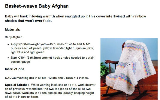 Vintage Crochet Pattern Rainbow Stripe Basket Weave Baby Afghan Blanket PDF Instant Digital Download 36x44 4 Ply