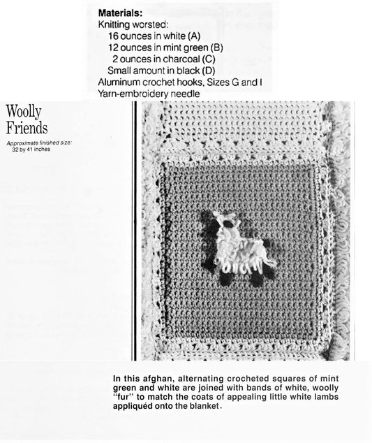 Vintage Crochet Pattern Loopy Lambs Baby Afghan Baa Baa Blanket PDF Instant Digital Download Sleepy Sheep Squares 10 Ply