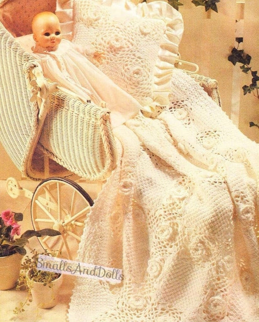 Vintage Crochet Pattern Irish Rose Baby Blanket Afghan & Pillow Set PDF Instant Digital Download Lace Rose Granny Square Motifs 4 Ply