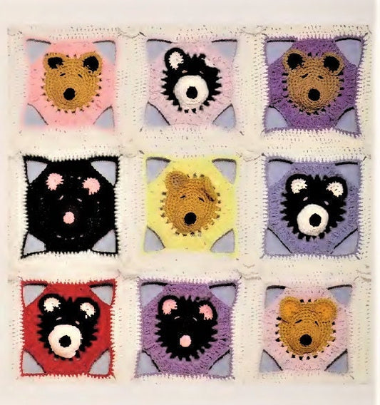 Vintage Crochet Pattern Sleepy Nosy Bears Squares Baby Afghan Animal Teddy Granny Square Blanket PDF Instant Digital Download 38x45 10 Ply
