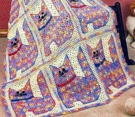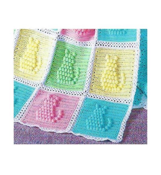 Vintage Crochet Pattern Colorful Calico Kittens Kitty Cat Squares Baby Afghan PDF Instant Digital Download Cat Afghan 34x44