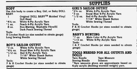 Vintage Crochet Pattern 16 Inch Doll Baby Soft Sculpture Dolls & Clothing PDF Instant Digital Download Cabbage Patch Kids 4 Ply