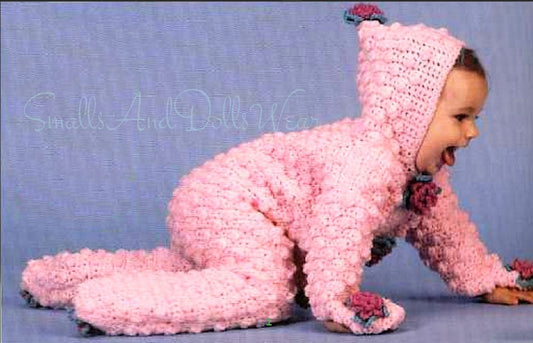 Vintage Crochet Pattern Baby Girl Puff Stitch Flower Bunting Suit Hooded Romper All In One PDF Instant Digital Download 3-9m 10 Ply