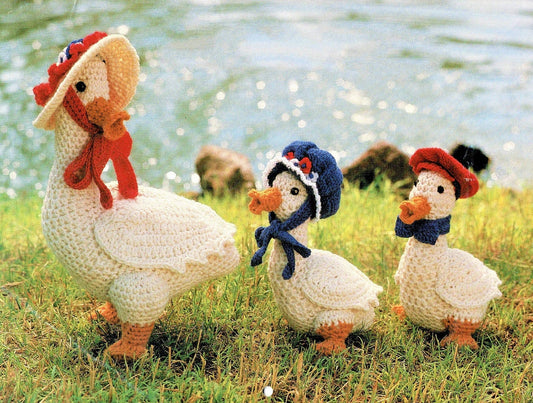 Vintage Crochet Pattern 13" 8" Country Goose Family Amigurumi PDF Instant Digital Download Mother and Baby Geese Goslings 10 Ply