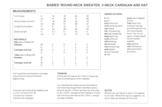 Vintage Knitting Pattern Striped Baby Cardigan & Pullover Sweater Hat Sets PDF Instant Digital Download 0 - 2 yrs DK 8 Ply