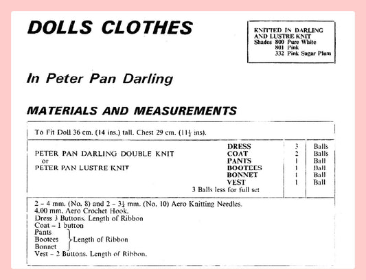 Vintage Knitting Pattern Pretty Doll Clothes Set for 14 Inch Baby Girl Doll 6 Piece PDF Instant Digital Download DK 8 Ply