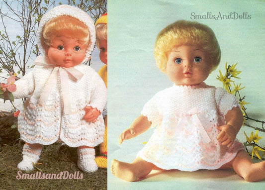 Vintage Knitting Pattern Baby Doll Clothes 6 Piece Layette Set PDF Instant Digital Download For 9 - 16 Inch Dolls 4 Ply