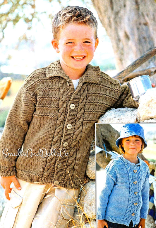 Vintage Knitting Pattern Baby Child Hooded or Collared Cardigan Sweater PDF Instant Digital Download Aran Jacket 3m-8 yrs