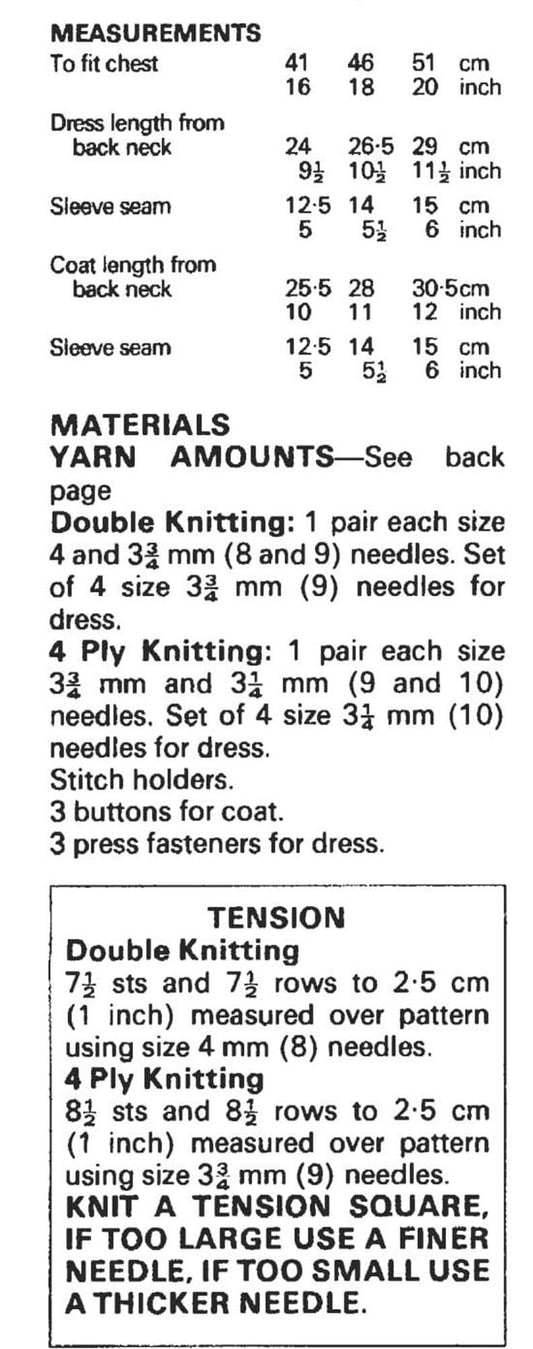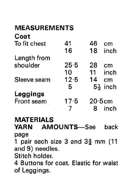 Vintage Knitting Pattern Baby Girl 4 Pc Coat Leggings Hat Mitts Set PDF Instant Digital Download 6-18m DK 8 Ply