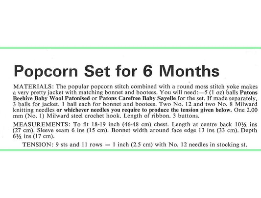 Vintage Baby Knitting Pattern Pretty Popcorn Moss Stitch Jacket Bonnet and Booties Set PDF Instant Digital Download 6-9 m 3 Ply