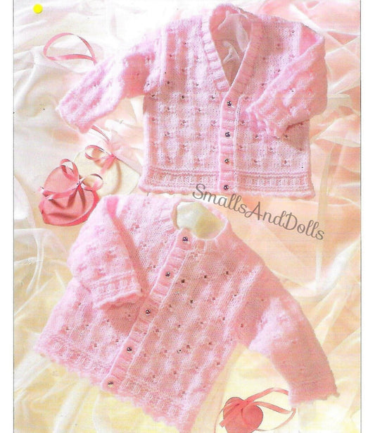 Vintage Knitting Pattern Baby Girls Pretty Eyelet Cardigan Sweaters PDF Instant Digital Download 0-6 yrs DK 8 Ply