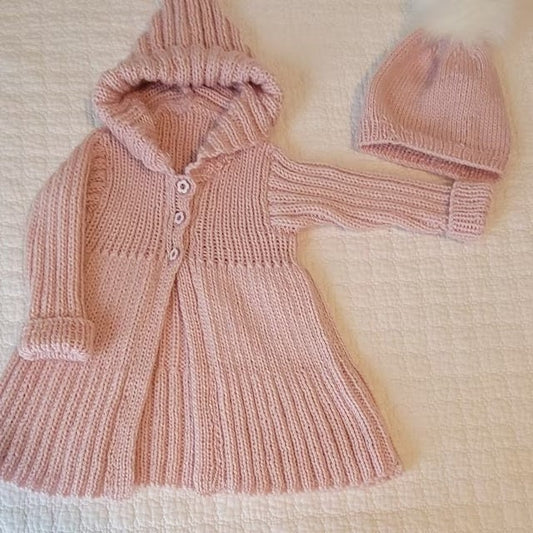 Vintage Knitting Pattern Baby to Toddler Girl Ribbed Hooded Coat Scarf Mitts Set PDF Instant Digital Download 0 - 4 yrs DK 8 Ply