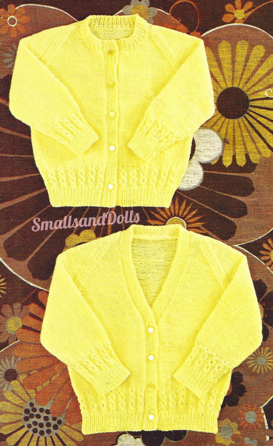 Vintage Knitting Pattern Classic Baby Easy Knit Cardigan Sweaters V Neck Round Neck PDF Instant Digital Download 6m - 2 yrs 4 Ply