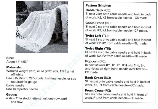 Vintage Knitting Pattern Classic Aran Fisherman Afghan PDF Instant Digital Download 5 Panels Cable Twist Popcorn Diamonds 10 Ply
