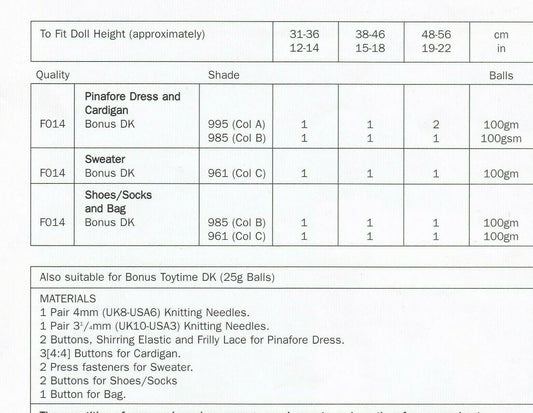 Vintage Knitting Pattern Doll Pinafore Dress Cardigan Sweater Purse Shoes Socks 12-14 15-18 19-22 Inch Dolls PDF Instant Digital Download DK