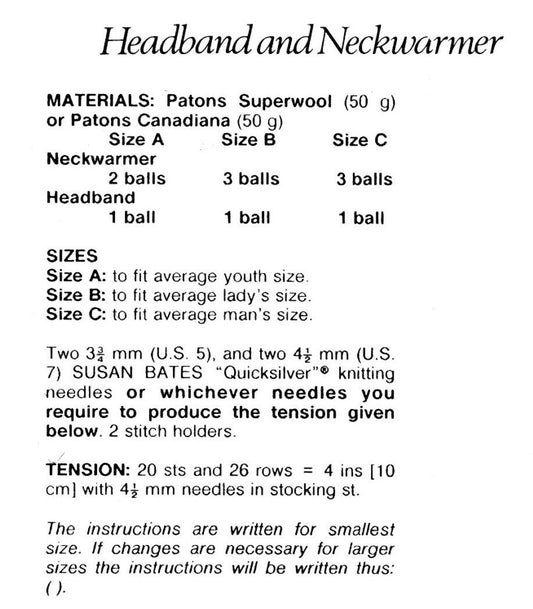Vintage Knitting Pattern Family Neckwarmers Turtleneck Dickies and Headbands PDF Instant Digital Download Retro Eighties Easy Knit 10 Ply