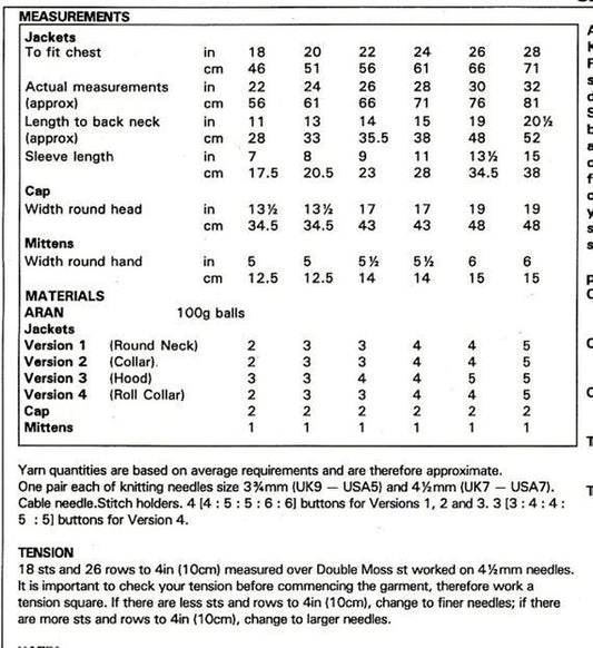 Vintage Knitting Pattern Knit Boys Aran Cardigan Jackets Cap Hat Mittens Set PDF Instant Digital Download 9m-9 years 10 Ply