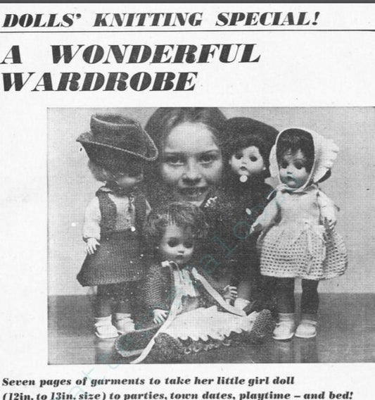 Vintage Knitting Pattern Knit Doll Clothes Outfits For 12 13 Inch Dolls PDF Instant Digital Download Retro 1966 Clothing 3 Ply 6 Ply