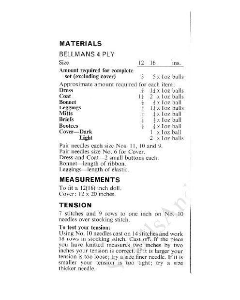 Vintage Knitting Pattern Knit Doll Clothes Outfits Complete Layette For 12 16 Inch Dolls 8 Pieces PDF Instant Digital Download 4 Ply