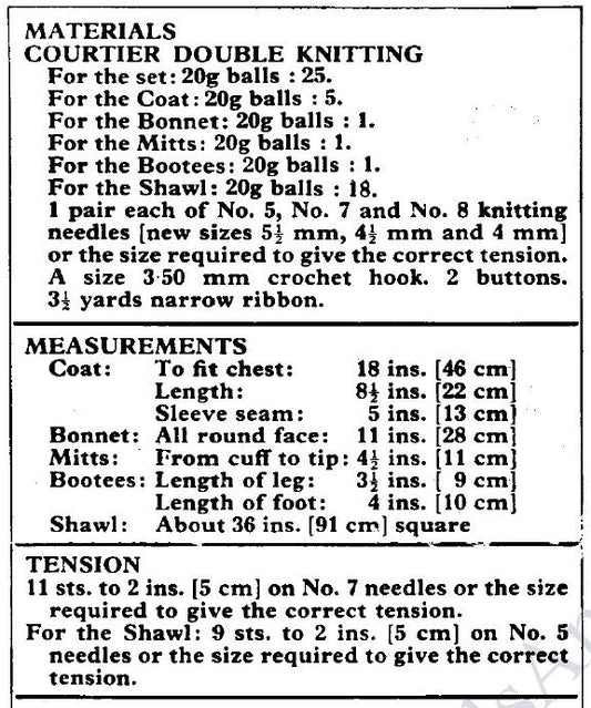 Vintage Knitting Pattern Pretty Baby Girl 5 Piece Lacy Layette Set PDF Instant Digital Download Bonnet Booties Coat Shawl Mitts 0-6m DK