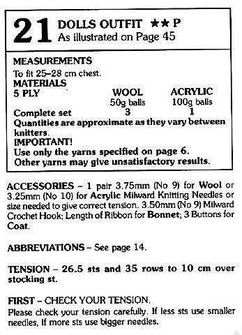 Vintage Knitting Pattern Pretty Outfit for My Child Doll or any 14" Dolls PDF Instant Digital Download Coat Bonnet Leggings 5 Ply