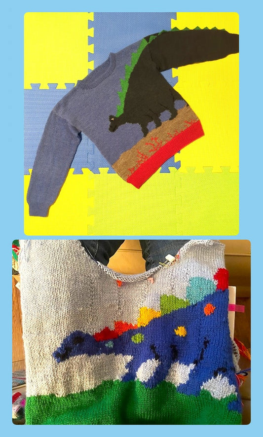 Vintage Knitting Pattern Toddler Boys Stegosaurus Dinosaur Sweater and Matching Teddy Bear Pullover PDF Instant Digital Download 2 4 6 Yrs