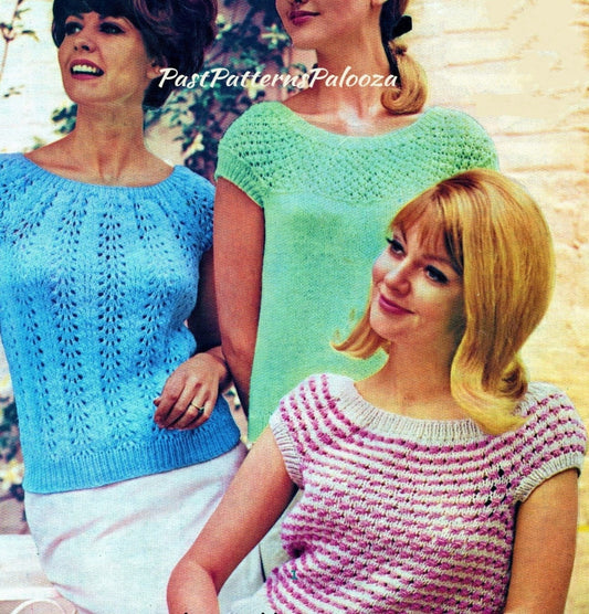Vintage Knitting Pattern Three Womens Pretty Summer Tops Short Sleeve Pullover Jumpers PDF Instant Digital Download DK Yarn
